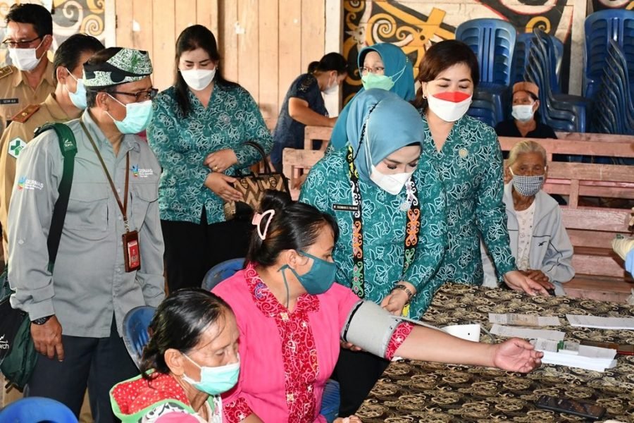 LONG NAWANG – TIM Pengerak PKK Provinsi Kalimantan Utara berkolaborasi bersama Dinas Kesehatan Provinsi Kalimantan Utara melaksanakan pelayanan kesehatan bagi warga di perbatasan negara.