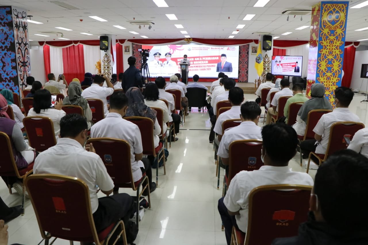 Tanjung Selor – Mewakili Gubernur, Sekretaris Daerah Provinsi Kalimantan Utara (Kaltara), Suriansyah membuka kegiatan Sosialisasi Area Perubahan Reformasi Birokrasi Terhadap Peningkatan Area Pengawasan dan Pelayanan Publik Provinsi Kaltara tahun 2021 di Ruang Serbaguna Gedung Gadis, Rabu (15/12).