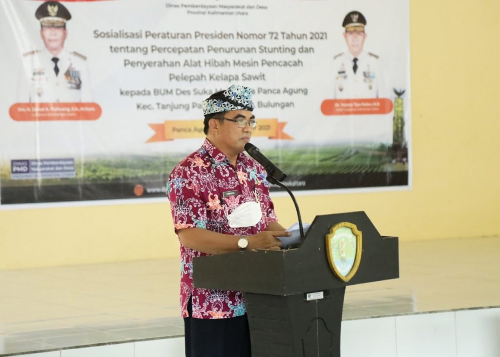 Selain Sosialisasi Perpres 72 tahun 2021, Pemerintah Provinsi (Pemprov) Kaltara juga menyerahkan mesin pencacah pelepah kelapa sawit kepada Badan Usaha Milik Desa (BUMDes) Suka Maju.