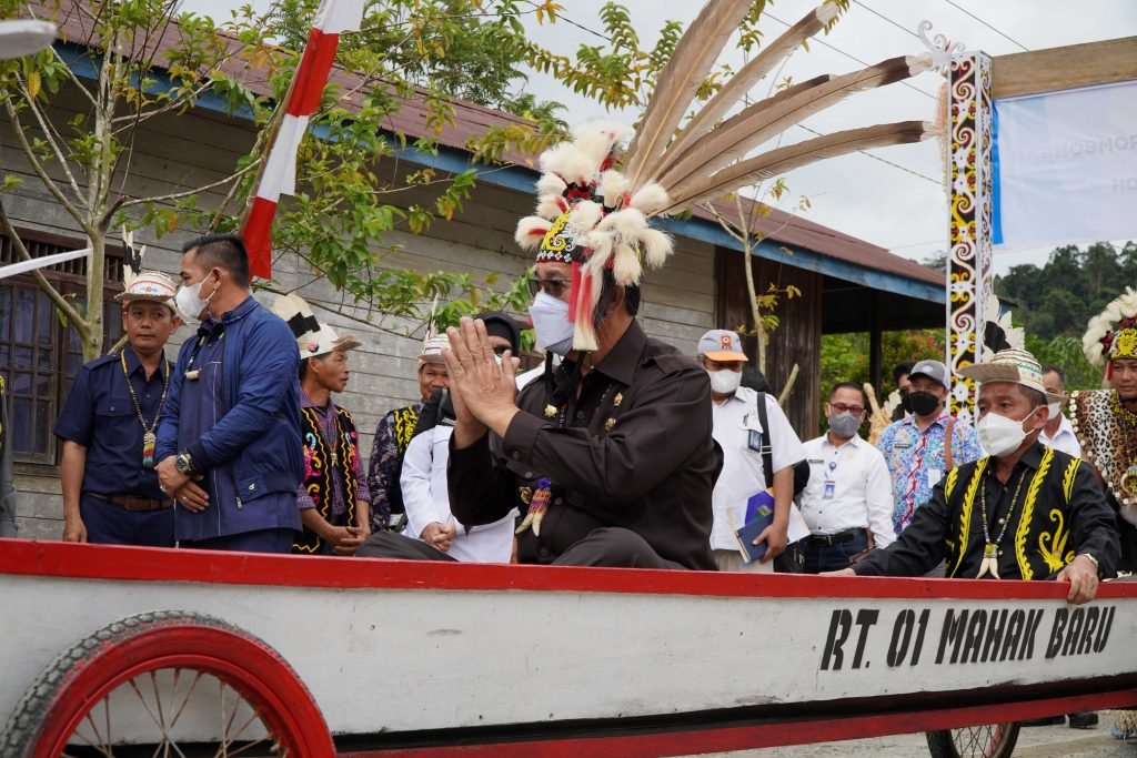 Selain itu, pria yang pernah menjabat Bupati Malinau ini juga diarak menggunakan perahu ‘Adang’ menuju balai adat diiringi dengan tarian pedang suku Dayak. Terlihat Wagub menegur sapa masyarakat yang sudah menanti sejak pagi hari dan disambut antusias masyarakat.
