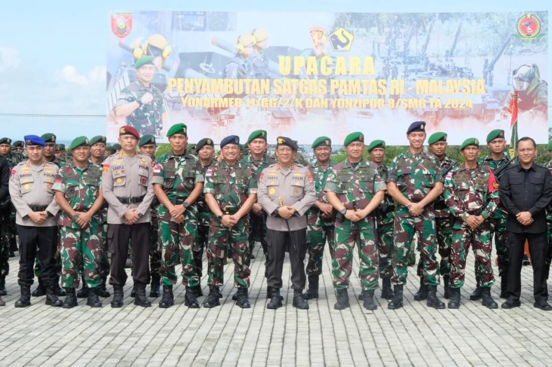 Tarakan – Kapolda Kaltara Irjen Pol. Hary Sudwijanto, S.I.K., M.Si. menghadiri Upacara Penyambutan Satgas Pamtas RI-Malaysia Yonarmed 11/GG/2/K dan Yonzipur 8/SMG T.A. 2024 bertempat di Mako Lantamal XIII Tarakan, Sabtu (24/08/2024).