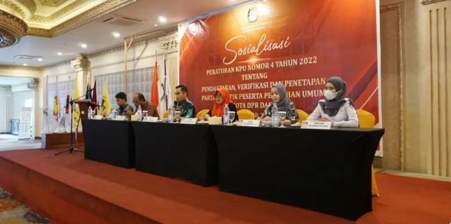 Sosialisasi ini tentang pendaftaran verifikasi dan penetapan partai politik peserta pemilihan anggota DPR dan DPRD tersebut dilangsungkan di Ballroom Hotel Exclusive, Kamis (28/7/2022).