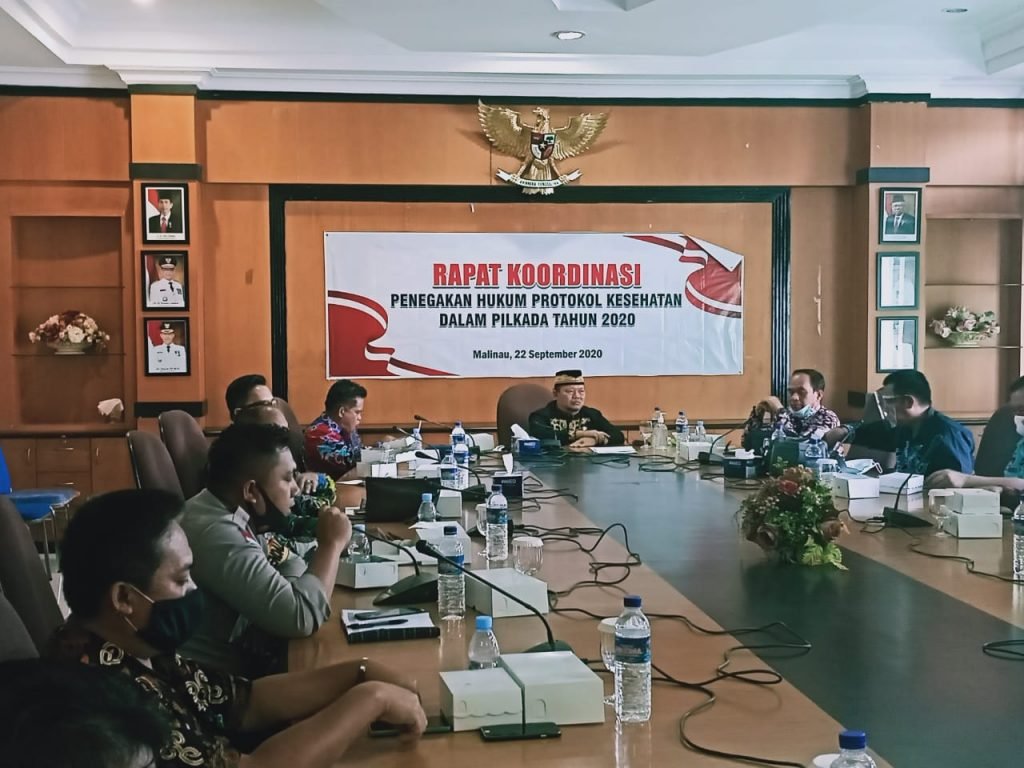 Selasa 22 September 2020 siang tadi, Pemkab malinau menggelar rapat koordinasi (rakor) penegakan hukum terhadap protokol kesehatan covid-19 yang dipimpin Asisten 1 Pemkab Malinau, Drs. H. Edy Marwan, M.Si dan diikuti oleh Komisi Pemilihan Umum (KPU) Malinau, Badan Pengawas Pemilu (Bawaslu) Malinau, jajaran petinggi Partai Politik (Parpol), Polres Malinau, serta perwakilan dari para Pasangan Calon (Paslon) Pemilihan Kepala Daerah (Pilkada) Malinau.