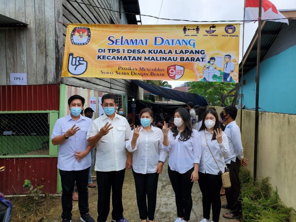 MALINAU – Ditemani istri dan anak, Dr. Yansen TP M.Si mendatangi TPS 1 Kuala untuk memberikan hak suaranya pada Pilbup Malinau dan Pilkada Provinsi Kalimantan Utara (Kaltara).