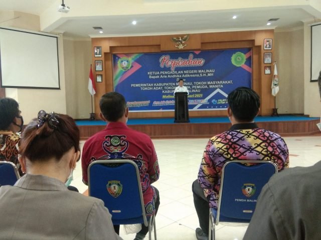MALINAU – Pemerintah Kabupaten (Pemkab) Malinau bersama dengan tokoh masyarakat, tokoh adat, tokoh agama, tokoh pemuda dan tokoh wanita menghadiri acara perpisahan Ketua Pengadilan Negeri (PN) Malinau, Arie Andhika Adikresna, S.H, MH yang dilaksanakan di Ruang Laga Feratu Kantor Bupati Malinau.