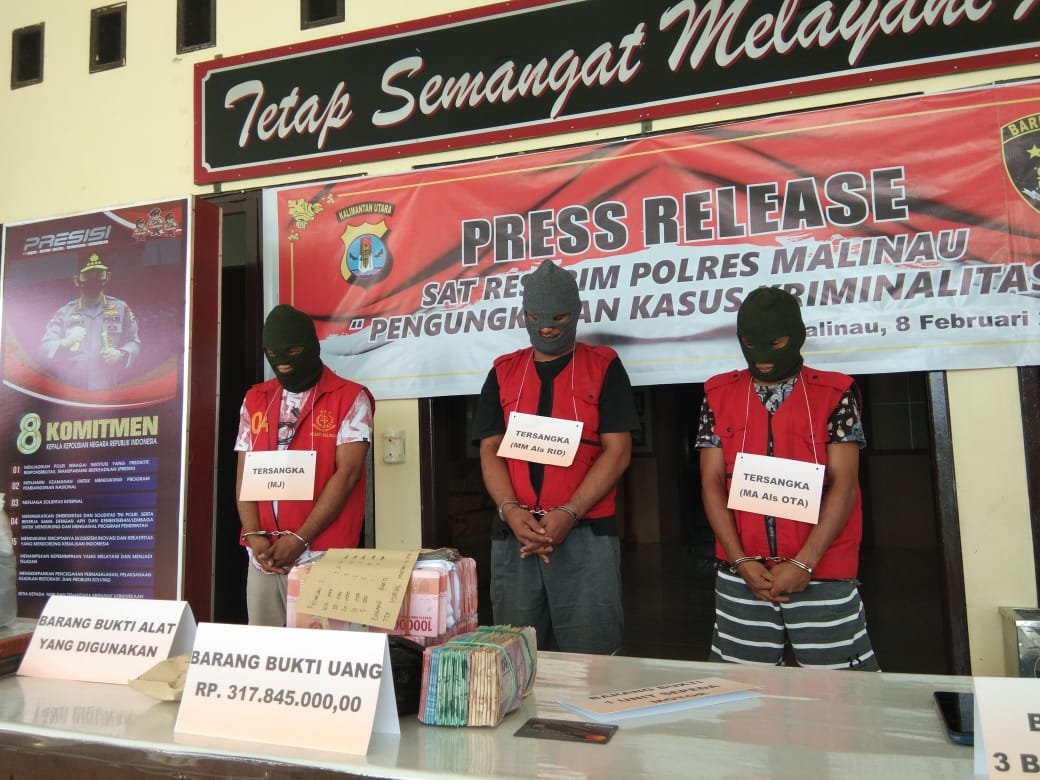 “Jika ditotal sebenarnya kerugian para korban jumlahnya Rp 426 juta, tapi yang berhasil kita amankan baru segini. Pasalnya menurut pelaku sisa uang lainnya sudah dimasukan kedalam rekening, makanya kita juga sedang bekerja sama dengan pihak bank untuk melakukan pemblokiran dari rekening yang dikatakan oleh para pelaku,” kata Kapolres Malinau AKBP Agus Nugraha SH MH SIK.