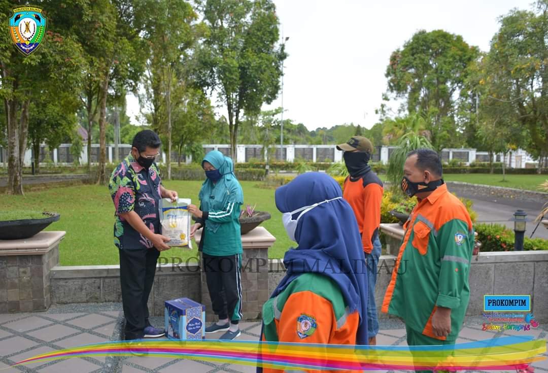 Dr. Yansen TP. M.Si mengucapkan syukur bisa bersilahturahmi dengan para petugas kebersihan, pertamanan dan pemakaman. Sebagai kepedulian, Bupati memberi tali asih berupa parsel lebaran kepada para petugas kebersihan, pertamanan dan pemakaman.