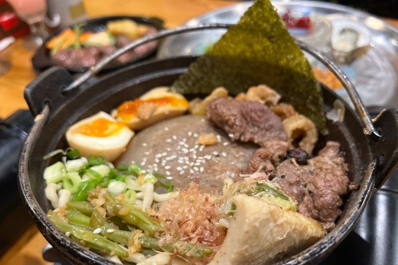 Meski yang diunggulkan ramen, ada “hidden gem” di menu ala carte yang wajib dicoba, khususnya bila Anda menyukai daging lezat. Ada Kobe grilled beef pot, potongan daging sapi Kobe ternama yang tebal, empuk dan juicy dengan saus jamur yang menambah tingkat kelezatannya.