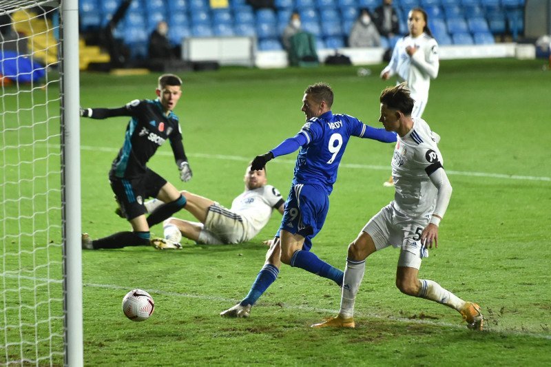 The Foxes, yang sekarang telah memenangi empat laga tandang musim ini, membuka keunggulan di menit kedua ketika Vardy mencegat back-pass buruk bek Leeds Robin Koch dan Harvey Barnes melesakkan bola ke gawang tim tuan rumah.