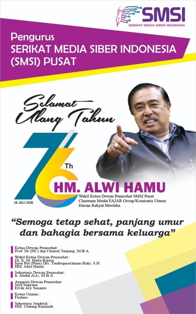 Dikatakan Firdaus, Ketua Serikat Media Siber Indonesia (SMSI) sosok Alwi Hamu salah seorang panutan di dunia pers. “Pak Alwi itu salah satu tokoh pers yang jadi panutan. Kami banyak belajar dari beliau, bagaimana membangun media dan membangun jejaring di berbagai kalangan dengan tetap menjujung integritas. Selamat ulang tahun pak Alwi, doa kami semoga tetap sehat, panjang umur dan bahagia bersama keluarga,” ucap Firdaus.(*)