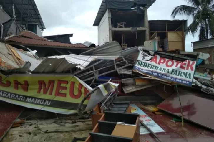 Sejumlah bangunan di Kabupaten Mamuju Provinsi Sulawesi Barat ambruk akibat gempa bermagnitudo 6,2 yang mengguncang wilayah itu pada Jumat dinihari sekitar pukul 02.00 WITA.