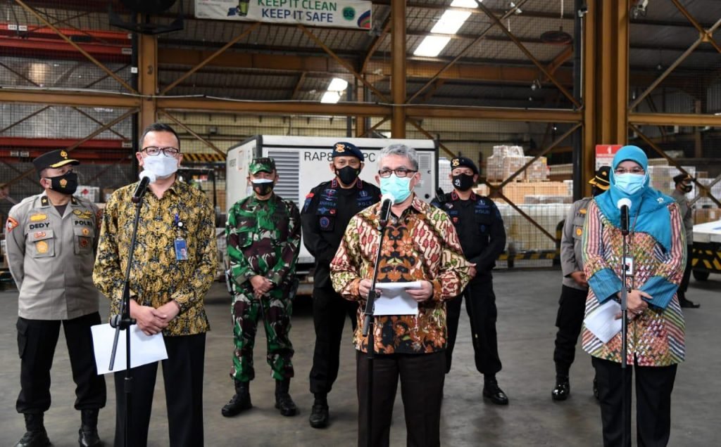 TANGERANG – Bahan baku bagi produksi vaksin Covid-19 kembali tiba di Indonesia pada Selasa, 2 Februari 2021. Kali ini, pemerintah mendatangkan sebanyak 10 juta dosis bahan baku vaksin dari perusahaan Sinovac yang tiba di Bandara Internasional Soekarno-Hatta, Tangerang, sekira pukul 10.15 WIB.