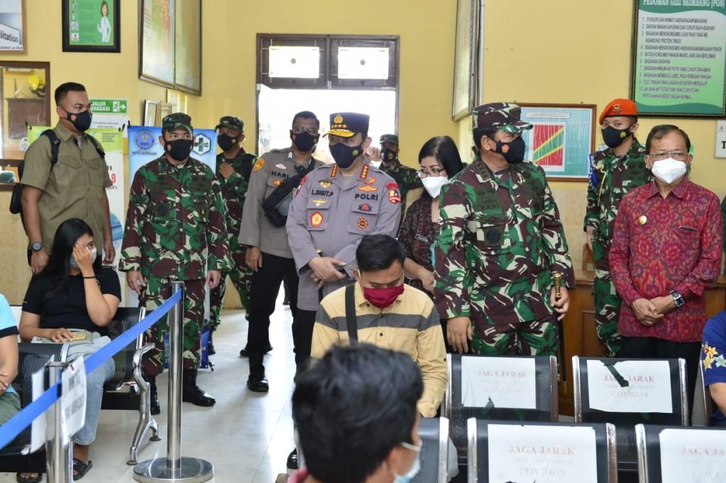 SURABAYA – Panglima TNI Marsekal Hadi Tjahjanto bersama Kapolri Jenderal Polisi Listyo Sigit Prabowo melanjutkan kunjungannya dari Semarang, Jawa Tengah menuju Surabaya, Jawa Timur. Di Mapolda Jawa Timur, Panglima dan Kapolri melihat pelaksaan vaksin 2.101 personel TNI-Polri.