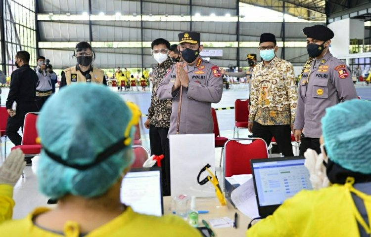 JAKARTA – Kapolri Jenderal Listyo Sigit Prabowo meninjau langsung Sentra Vaksinasi Mahasiswa Indonesia (SVMI) di Sarana Olahraga (SOR) Universitas Indonesia (UI), Depok, Jawa Barat, Kamis (12/8/2021).