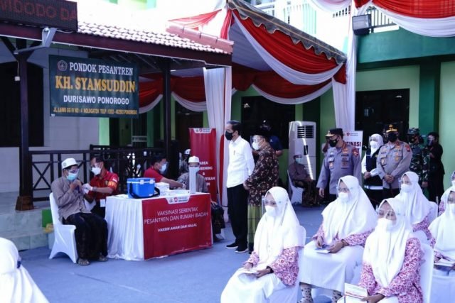 “Vaksinasi Merdeka pada hari ini melibatkan rumah ibadah dan pondok pesantren dengan sasaran masyarakat umum, lansia, jemaat, santri, pengasuh pondok pesantren, dan pengurus rumah ibadah di 341 titik dengan total sasaran 346.688 orang,” kata Sigit saat mendampingi Presiden Jokowi meninjau vaksinasi merdeka di Pondok Pesantren K.H. Syamsudin, Ponorogo, Jawa Timur.