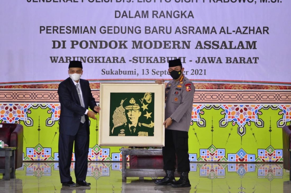 SUKABUMI – Kapolri Jenderal Listyo Sigit Prabowo menghadiri peresmian gedung baru asrama putri Pondok Pesantren Assalam sekaligus melakukan peninjauan vaksinasi massal dalam serangkaian kunjungan kerjannya di Sukabumi, Jawa Barat, Senin (13/9/2021).