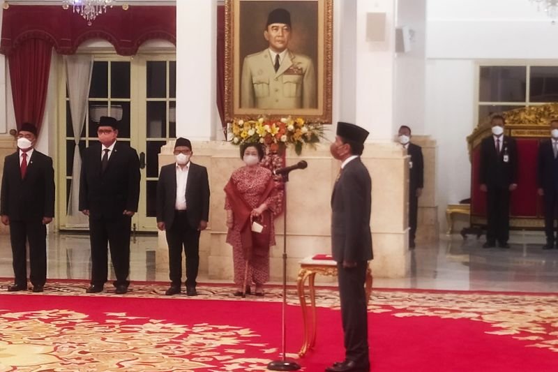 Setelah pembacaan keppres, dilakukan pengambilan sumpah jabatan kepada masing-masing pejabat yang dilantik di hadapan Presiden Jokowi dan disaksikan rohaniwan.