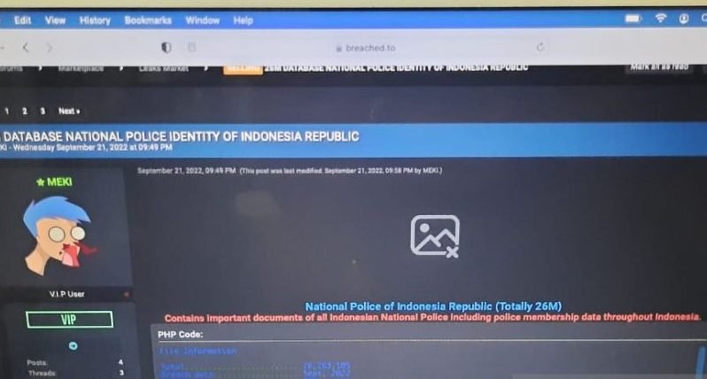 Sebelumnya beredar berita 26 juta dokumen Polri bocor ke publik. Dokumen tersebut diunggah dalam situs gelap Brached Forum oleh pengguna menamai dirinya Meki. Dalam unggahannya, dia menuliskan “26M Database National Police Identity of Indonesia Republic”.