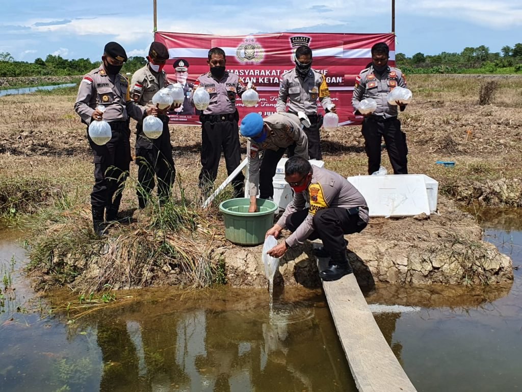 Adapun bibit ikan yang ditabur di kolam, ikan Nila 2000 ekor, mujair 2000 ekor, bandeng 20.000 ekor dan udang tambak 50.000 ekor. AKBP Syaiful Anwar S.Ik menuturkan, akan bekerjasama sama dengan TNI melalui Bhabinkamtibmas dan Babinsa dengan warga Nunukan dalam rangka menghidupkan ketahanan pangan yang kuat di tengah-tengah masyarakat dengan mengelola lahan dan masyarakat untuk di budidaya menjadi lahan yang pruduktif. “Sehingga ketahanan pangan dapat menciptakan masyarakat yang produktif,” tutur Syaiful.