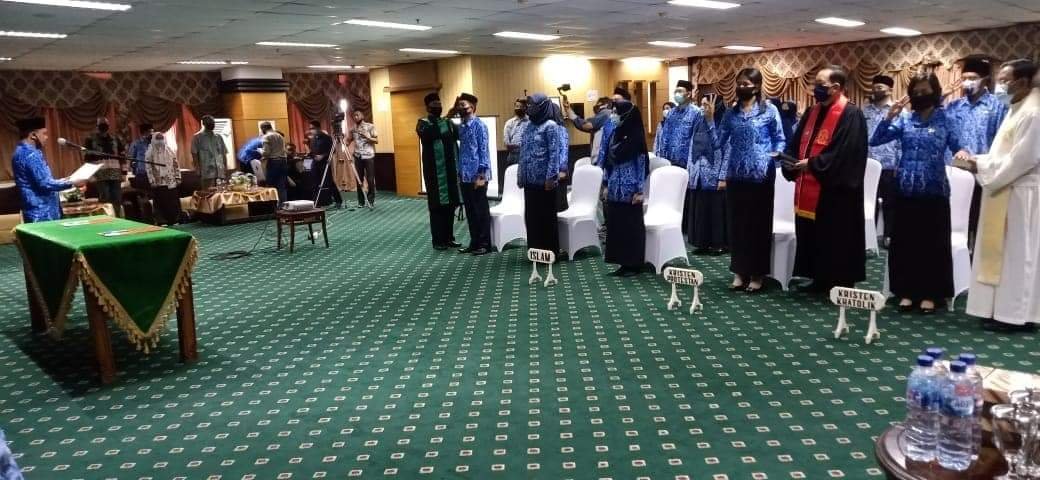Kahar menjelaskan bahwa sesuai dengan Undang-Undang ASN Nomor 5 Tahun 2014 dan Peraturan Pemerintah Nomor 11 Tahun 2017 dan peraturan Kepala BKN, menyebutkan bahwa setiap PNS yang diangkat dalam suatu jabatan wajib dilantik dan mengangkat sumpah/janji jabatan menurut agama dan kepercayaannya kepada Tuhan Yang Maha Esa. (*)