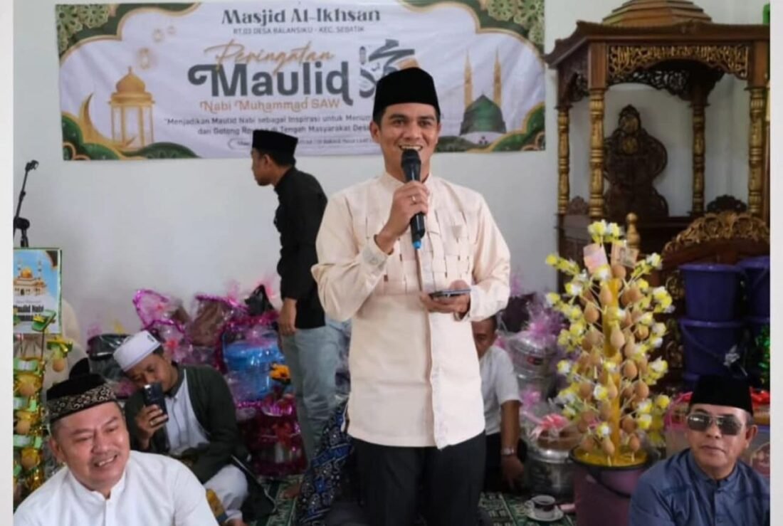 benuanta.co.id, NUNUKAN– Bupati Nunukan, H. Irwan Sabri, SE, menghadiri peringatan Maulid Nabi Muhammad SAW di Masjid Darul Ikhsan, Desa Balansiku, Kecamatan Sebatik, pada Ahad (14/9/2025).