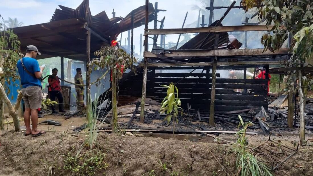 Akibat kebakaran tersebut, rumah berbahan kayu seluas 7×15 meter persegi ludes terbakar dan hanya menyisakan tiang dan struktur dasar rumah.