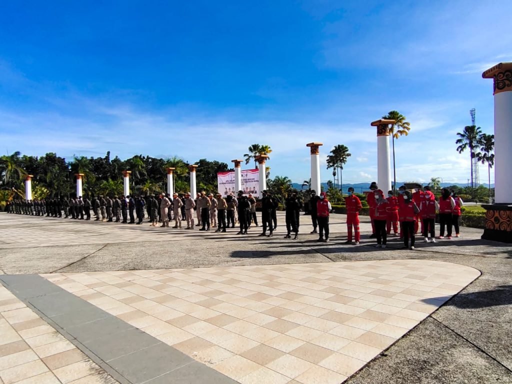 NUNUKAN – Sebagai langkah antisipasi dan preventif atas dampak fenomena alam, Pemerintah Kabupaten Nunukan beserta unsur TNI dan Polri menggelar Apel Gelar Pasukan Siaga Bencana Hidrometeorologi. Kegiatan ini diselenggarakan di Lapangan Upacara Kantor Bupati Nunukan, Kamis (19/11/2020).
