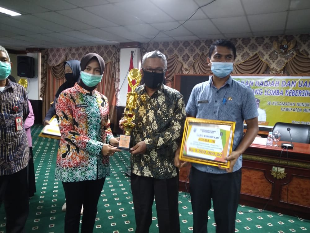 NUNUKAN – Bupati Nunukan, Hj. Asmin Laura Hafid, SE, MM menyerahkan hadiah dan uang pembinaan kepada pemenang lomba kebersihan tingkat RT se-Kecamatan Nunukan dan Nunukan Selatan, Kabupaten Nunukan, di ruang VIP Lantai 4, Kantor Bupati Nunukan, Jumat (8/1/2021).