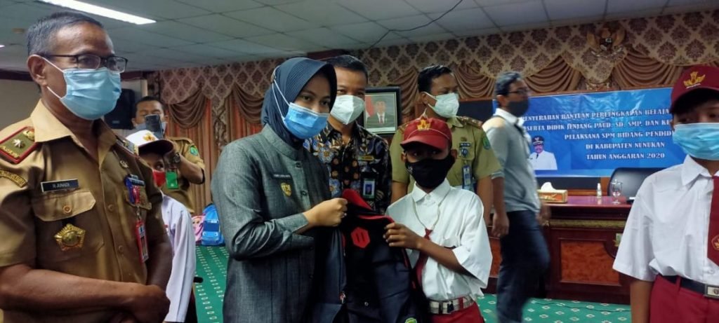 NUNUKAN – Bupati Nunukan, Hj. Asmin Laura Hafid menyerahkan bantuan berupa perlengkapan sekolah kepada siswa kegiatan standar pelayanan minimal (SPM) untuk jenjang pendidikan tingkat TK, PAUD, SD, SMP, dan kesetaraan. Bantuan diberikan secara simbolis di Kantor Bupati Nunukan, Lantai 4 Ruang VIP, Senin 11 Januari 2021.