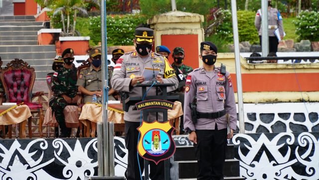 NUNUKAN – Polres Nunukan menggelar Ops Keselamatan Kayan 2021 yang ditandai dengan gelar pasukan di Lapangan Apel Tribrata Polres Nunukan pada Senin, 12 April 2021.