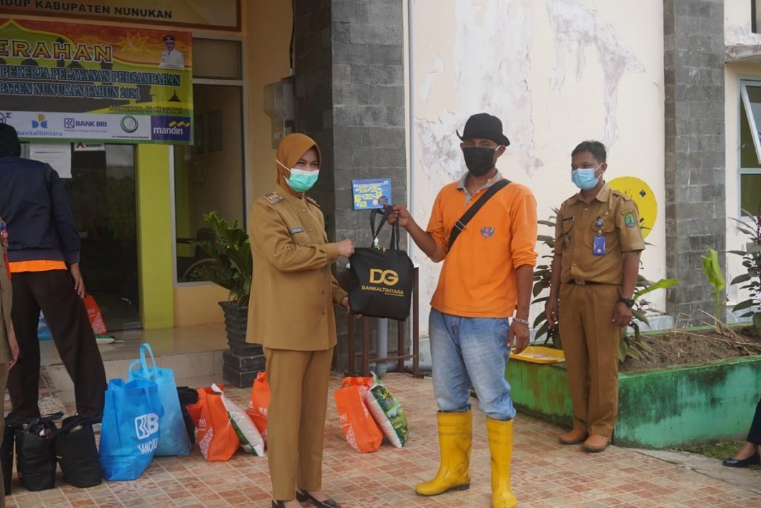 Bupati Laura menyerahkan secara simbolis di halaman kantor DLH Nunukan. Dalam kegiatan itu, Bupati Laura mengapresiasi dan berterimakasih kepada pihak perbankan, perusahaan, serta Baznas Nunukan yang bekerjasama dengan pemerintah daerah, atas kepeduliannya terhadap para petugas kebersihan.