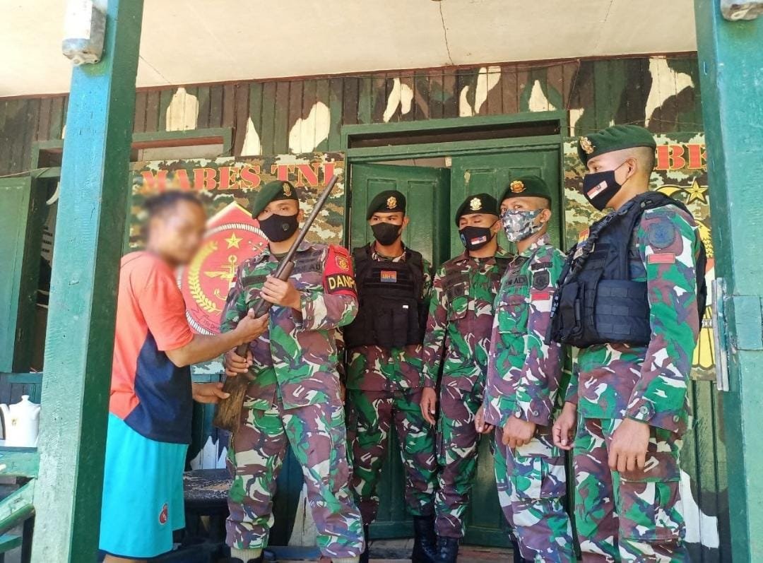 NUNUKAN – Personel Satgas Pamtas RI-Malaysia Batalyon Arhanud (Yonarhanud) 16/SBC kembali menerima satu pucuk senjata api rakitan jenis penabur dari salah seorang warga berinisial J (56). J merupakan warga Desa Panas, Kecamatan Lumbis Pansiangan yang diserahkan pada Senin, 12 Juli 2021.
