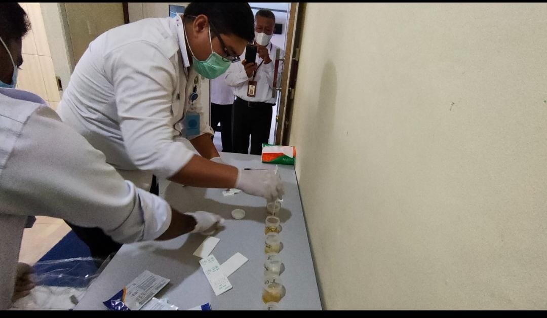 Kurang dari 30 menit, seluruh pegawai menyetor sampel urine kepada petugas BNN. Total didapatkan 13 sampel urine dan seluruh sampel dilakukan uji menggunakan rapid test narkoba tujuh parameter. Berdasarkan hasil pengujian, 13 sampel seluruhnya dinyatakan negatif narkoba.