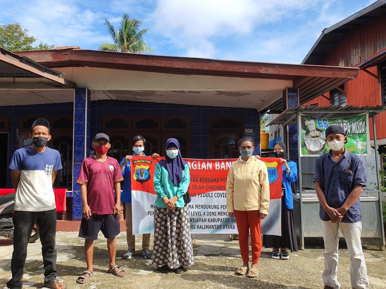 Pembagian bansos oleh Polda Kaltara bersama PMII Nunukan kepada masyarakat, tetap mengutamakan protokol kesehatan Covid-19 sehingga hanya beberapa warga saja yang menerima secara simbolis, sisanya dibagikan melalui perwakilan warga.