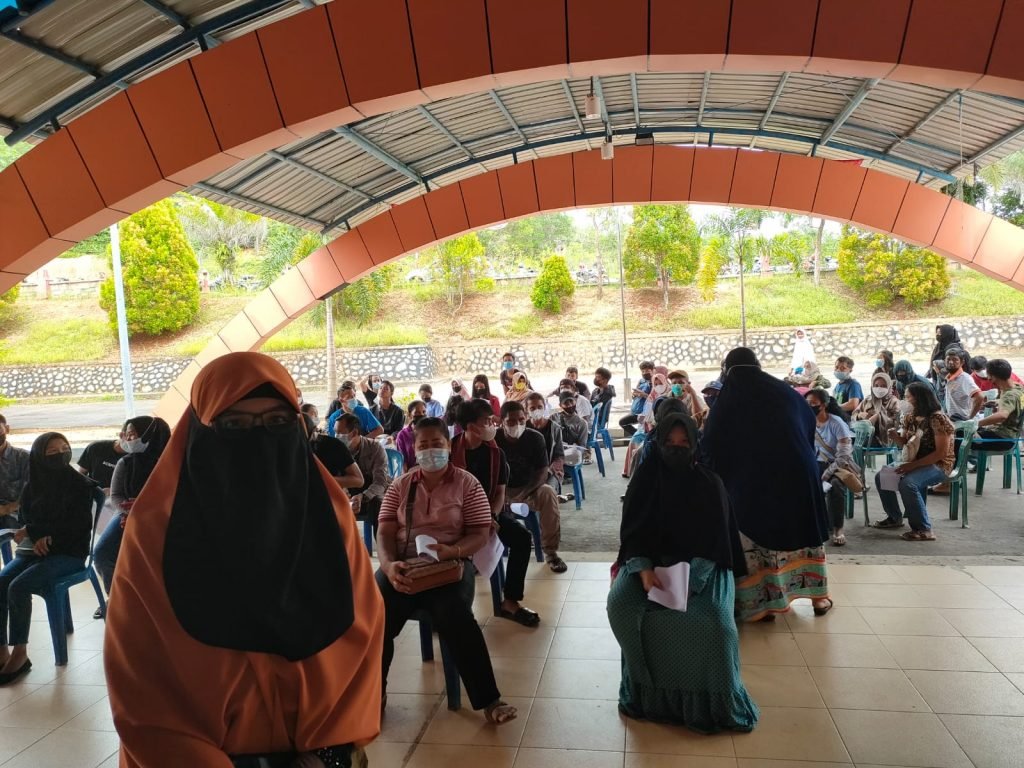 benuanta.co.id, NUNUKAN – Sebanyak 1.000 dosis vaksin Moderna diberikan kepada masyarakat Nunukan untuk dosis pertama di GOR Sei Sembilan, Kamis 9 September 2021. Antusias masyarakat untuk vaksin sangat tinggi, terlihat dari halaman GOR warga mengantre untuk dapat vaksin tahap satu.