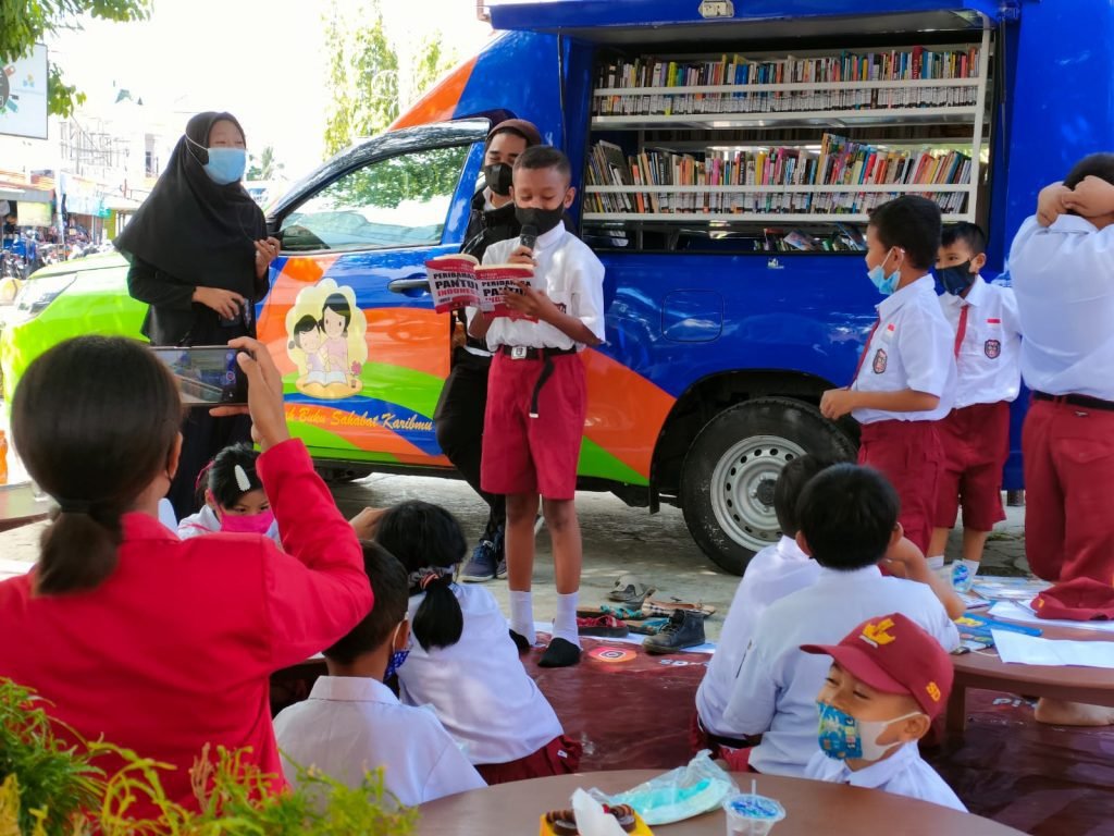“Ada 18 siswa yang ikut mengunjungi perpustakaan, mereka juga bejalan mulai dari cara menulis, membaca bahkan mereka juga diajar untuk berpantun dan baca puisi,” ujar Ponima.