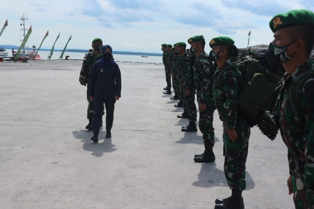 NUNUKAN – Sebelum menjalankan tugas, prajurit Batalyon Infanteri (Yonif) 623 Bhakti Wira Utama (BWU) di perbatasan Indonesia-Malaysia, Bupati Nunukan, Hj. Asmin Laura Hafid SE MM memberikan gambaran dan memperkenalkan kondisi wilayah Kabupaten Nunukan.