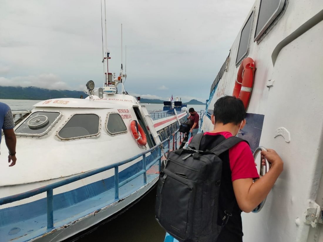 Setibanya di Pelabuhan Internasional Tunon Taka, petugas membawa surat hasil PCR untuk divalidasi oleh pihak Karantina Pelabuhan, kemudian dilakukan pemeriksaan pasport serta identitas diri.