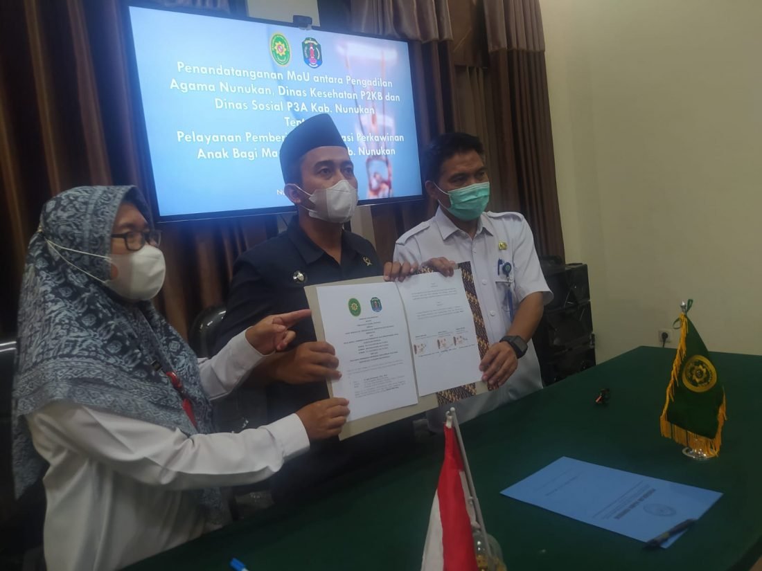 benuanta.co.id, NUNUKAN – Banyaknya permohonan perkawinan anak di Kabupaten Nunukan menginisiasi Pengadilan Agama Kabupaten Nunukan untuk bekerjasama dengan Dinas Kesehatan Pengendalian Penduduk dan Keluarga Berencana (Dinkes P2KB) dan Dinas Sosial Pemberdayaan Perempuan dan Perlindungan Anak (DSP3A) Kabupaten Nunukan, dalam pelayanan pemberian dispensasi perkawinan anak.