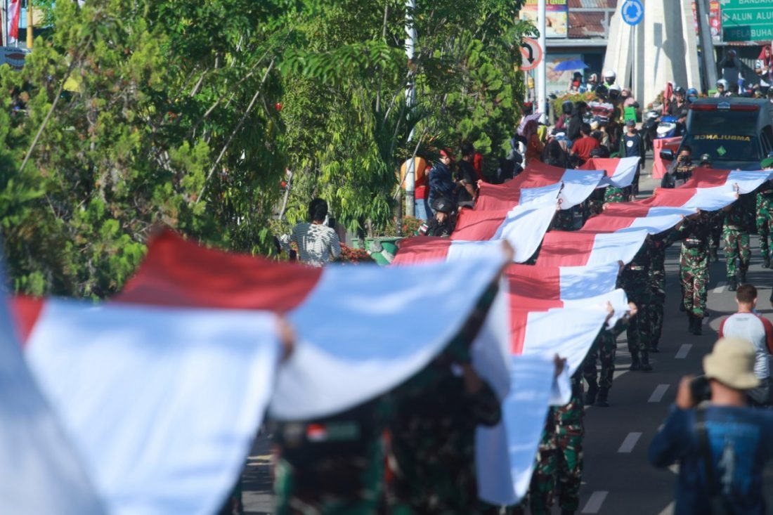 “Salah satu regu yang sempat menarik perhatian penonton di sepanjang jalan rute yang dilalui peserta pawai saat itu adalah regu dari personil yang membawa Bendera Merah Putih masing-masing sepanjang 500 meter,” jelasnya.