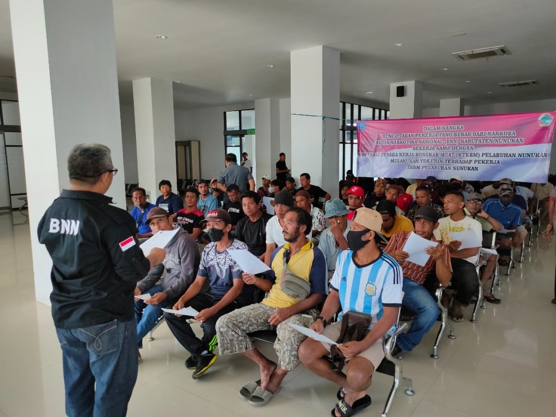 benuanta.co.id, NUNUKAN – Sebanyak 327 Tenaga Kerja Bongkar Muat (TKBM) di Nunukan dilakukan tes urine oleh Badan Narkotika Nasional (BNN) Kabupaten Nunukan. Dari hasil pemeriksaan ini, satu orang di antaranya positif menkonsumsi obat-obatan.