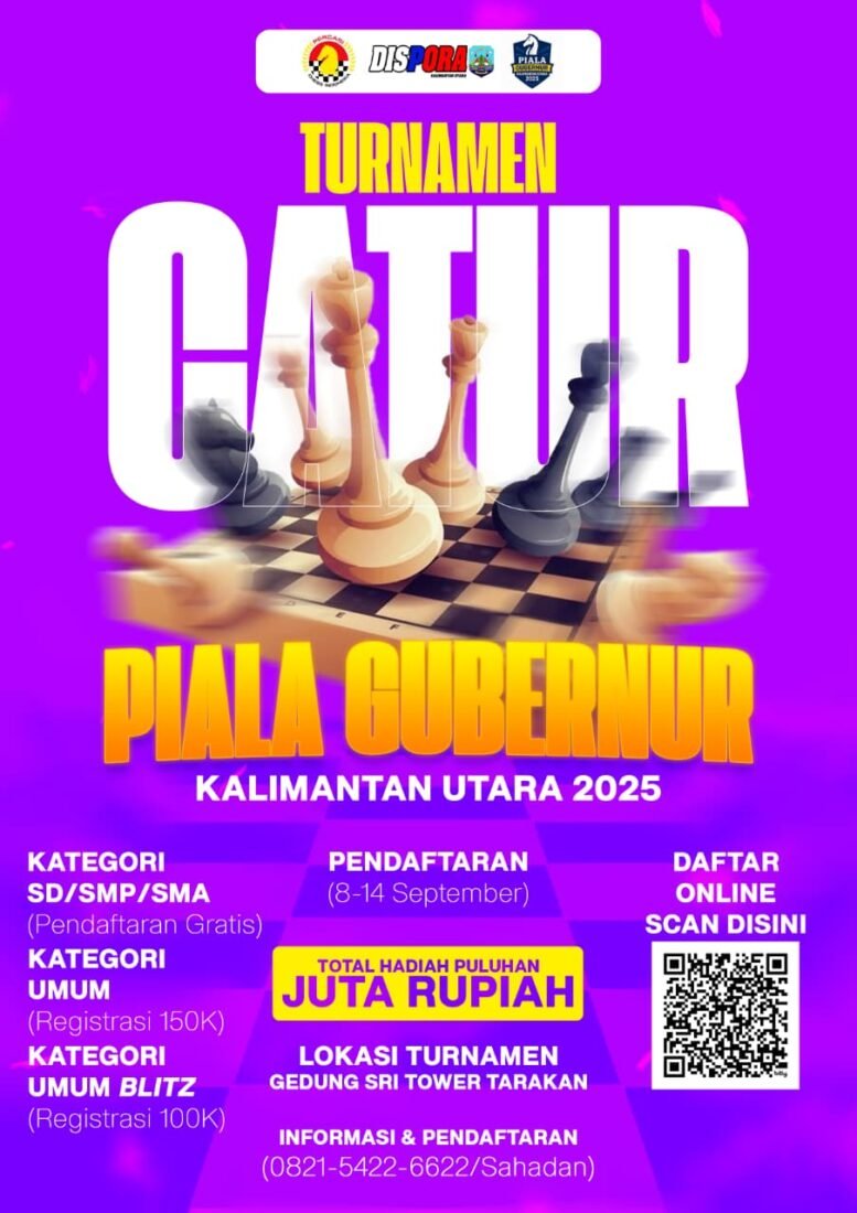 “Turnamen catur ini diadakan untuk menjadi wadah para pecinta catur dan komunitas catur menyalurkan hobi, kreativitas, dan ketangkasan. Tetapi tujuan utamanya adalah mencari bibit unggul pecatur di Kaltara,” ujarnya, Kamis (25/9/2025).