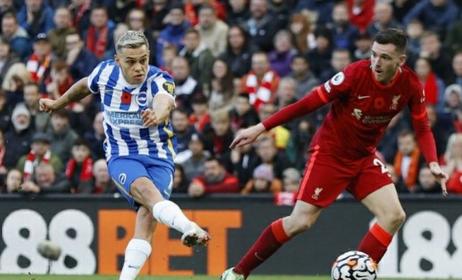 Pada menit ke-76, gawang Liverpool dibobol lagi oleh Trossard tetapi ia sudah lebih dulu terjebak offside saat Tariq Lamptey mengirim umpan terobosan.