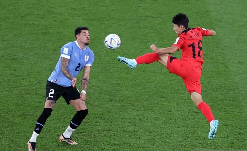 Uruguay membalas melalui serangan balik. Mathias Olivera mengirimkan bola ke kotak penalti yang dikejar Darwin Nunez, tetapi bola keburu ditangkap Kim Seung-gyu sebelum mencapai kaki penyerang Liverpool itu.