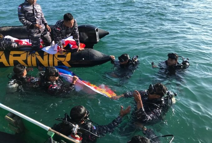 Satgas Marinir Ambalat Kibarkan Bendera Merah Putih di Dasar Laut