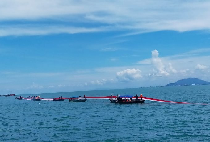 Calon Rekor MURI, Bendera Merah Putih Sepanjang 10 Km Dibentangkan di Laut Sebatik