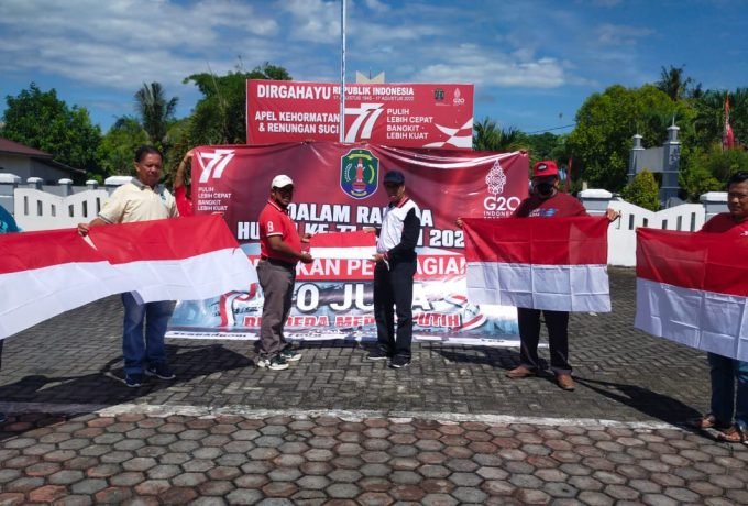 Semarakkan HUT RI, Kesbangpol Nunukan Gaet Ormas Bagikan Bendera Merah Putih