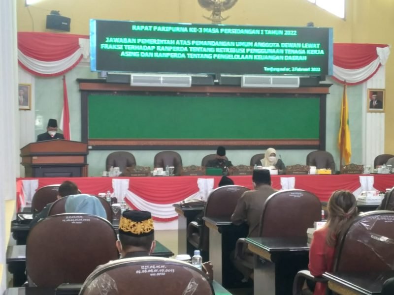 “Raperda ini dinilai sangat penting agar tidak ada pungutan liar terhadap TKA. Oleh karena itu perlu payung hukum. Adapun besaran retribusi Tenaga Kerja Asing sebesar 100 USD perorang perbulan. Tapi ini masih dalam pembahasan besarannya,” paparnya.