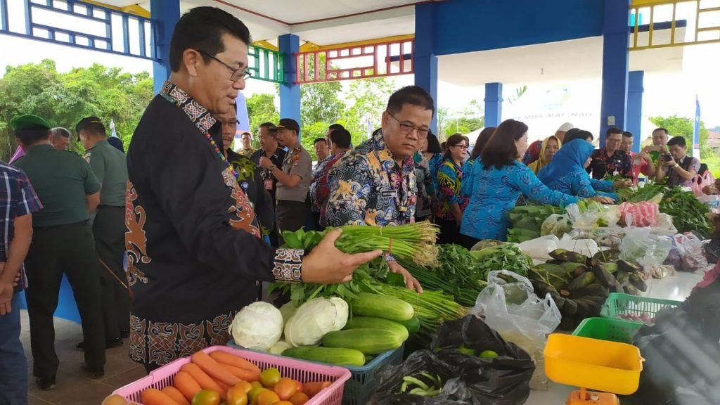 Terlihat, Bupati Malinau Dr. Yansen TP, M. Si beserta rombongan sangat antusias saat berbelanja beraneka ragam jenis sayur-sayuran, buah-buahan dan jenis ikan yang merupakan produk lokal petani yang berada di Kabupaten Malinau.