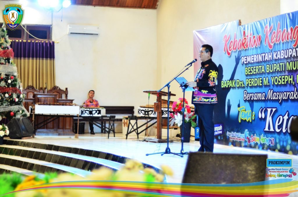 Malinau – Agenda kunjungan Bupati Murung Raya Drs. Perdie M. Yoseph, M.A bersama rombongan ke Kabupaten Malinau, salah satunya adalah Kebaktian Kebangunan Rohani (KKR) yang dilaksanakan di Gereja Kemah Injil Indonesia (GKII) Jemaat Tanjung Lapang, Kecamatan Malinau Barat, Senin malam (3/2).